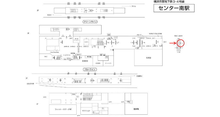 横浜市営地下鉄 センター南駅の駅構内にある駅看板です。