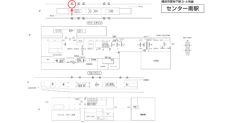 横浜市営地下鉄 センター南駅の線路前にある駅看板です。