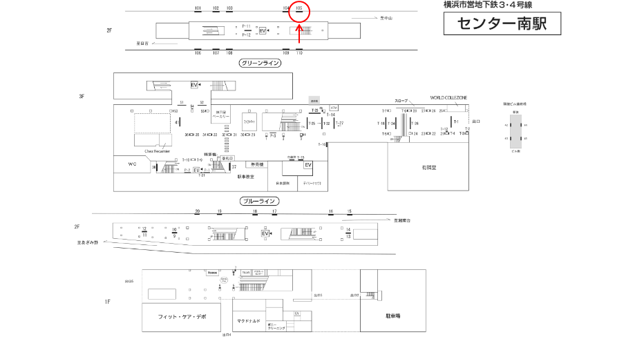 横浜市営地下鉄 センター南駅の線路前にある駅看板です。
