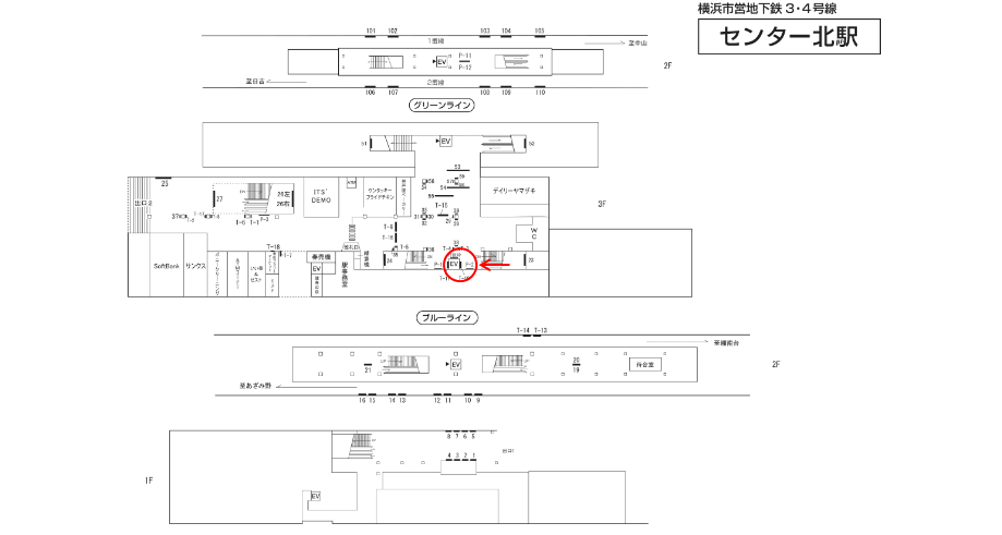 横浜市営地下鉄 センター北駅の駅構内にある駅看板です。