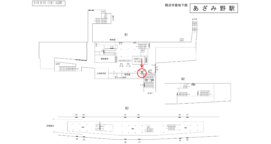 横浜市営地下鉄 あざみ野駅の駅構内にある駅看板です。