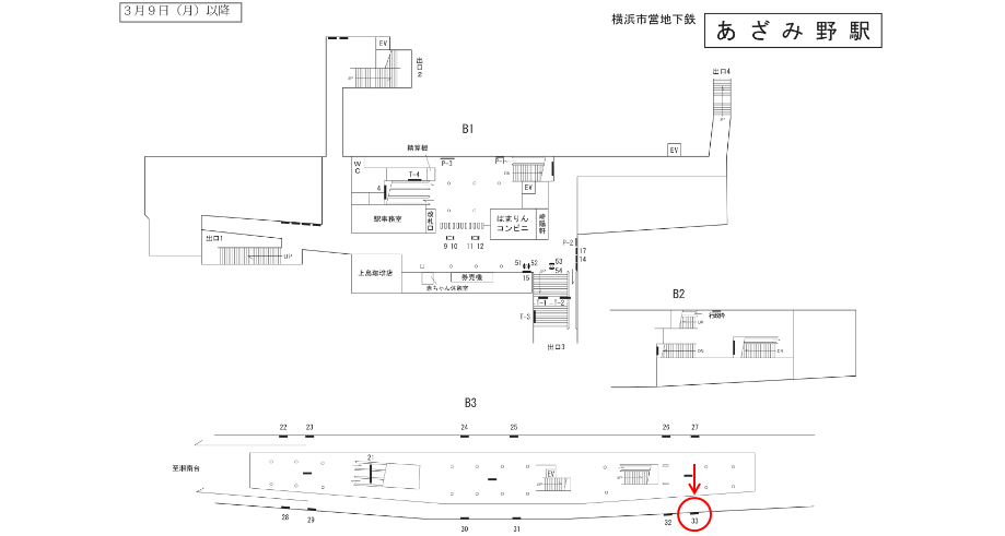横浜市営地下鉄 あざみ野駅のホームにある駅看板です。