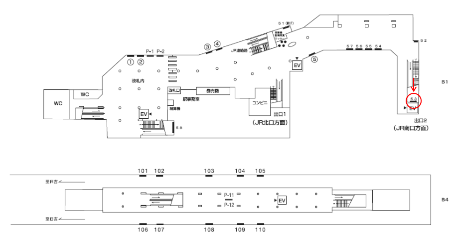 駅構内にある駅看板は「これから電車に乗る方」もしくは「駅を出る方」に見てもらえます。いずれにしても駅を利用するタイミングで広告に接触します。移動中に見てもらえる駅構内の駅看板は、中山駅の周辺にある店舗施設の紹介や道案内に利用されています。特に駅の出口付近にある駅看板は、店舗までの距離が近く案内看板に適しています。