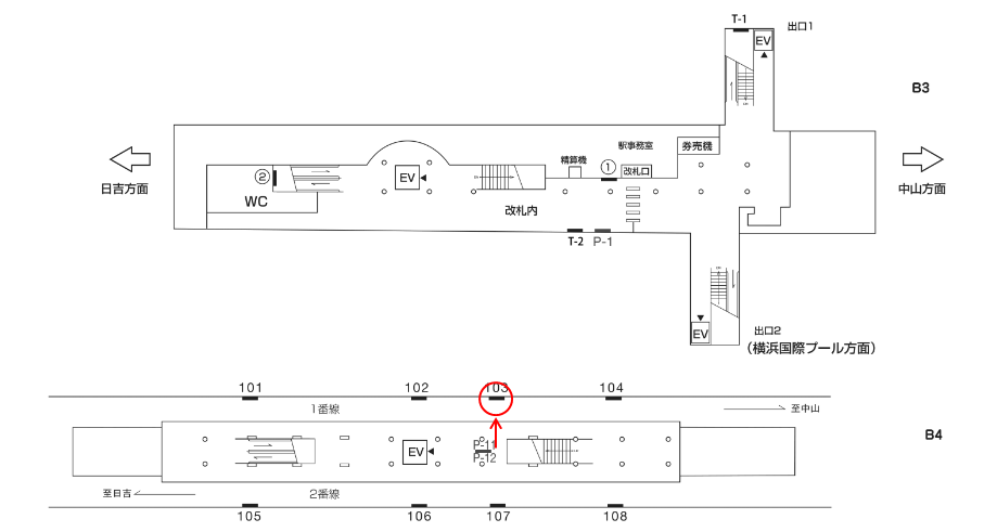 横浜市営地下鉄 北山田駅の線路前にある駅看板です。