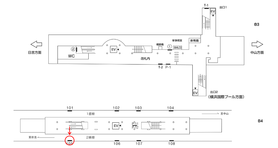 横浜市営地下鉄 北山田駅の線路前にある駅看板です。