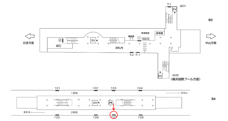 横浜市営地下鉄 北山田駅の線路前にある駅看板です。