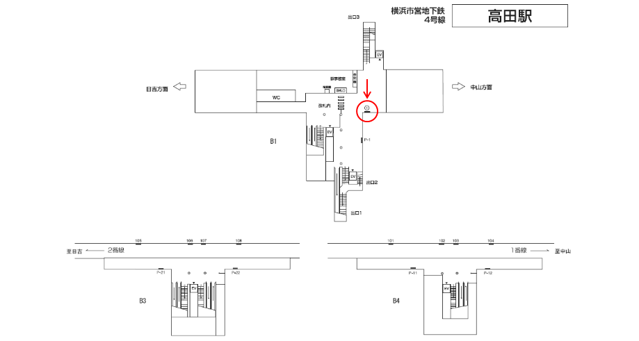 横浜市営地下鉄 高田駅の駅構内にある駅看板です。