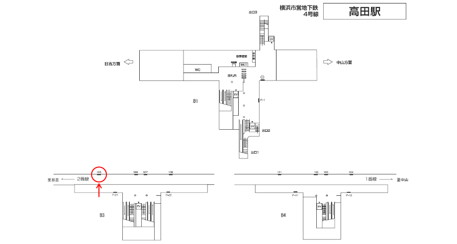 横浜市営地下鉄 高田駅の線路前にある駅看板です。