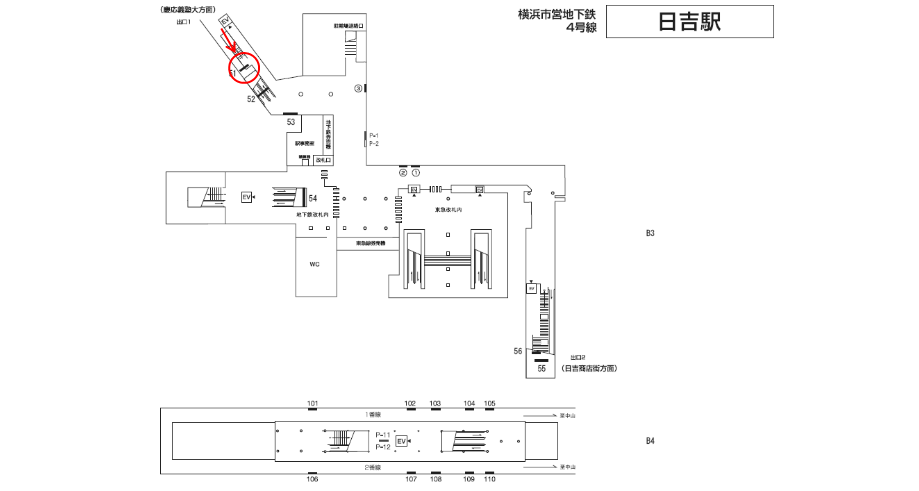 横浜市営地下鉄 日吉駅のエスカレーターの正面にある駅看板です。