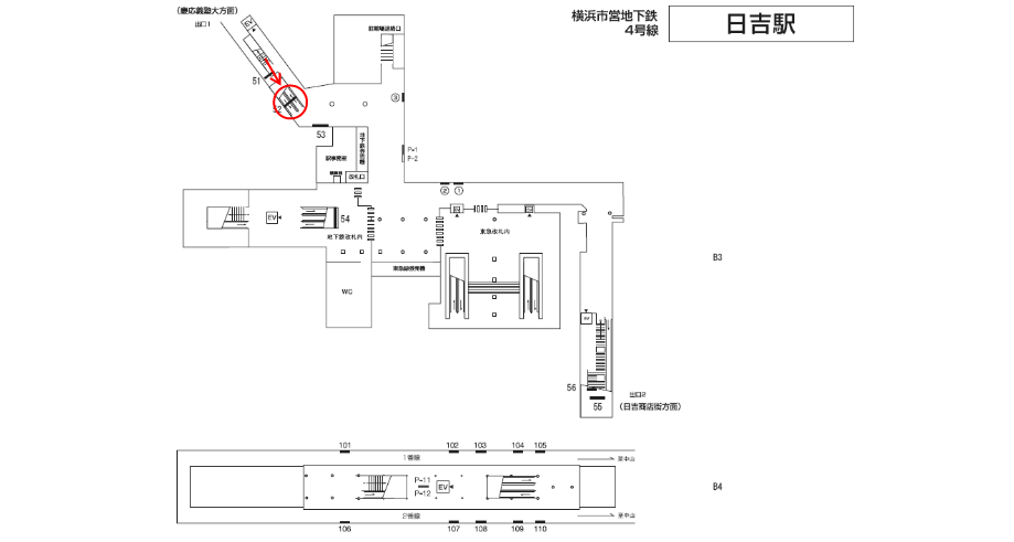 横浜市営地下鉄 日吉駅のエスカレーターの正面にある駅看板です。