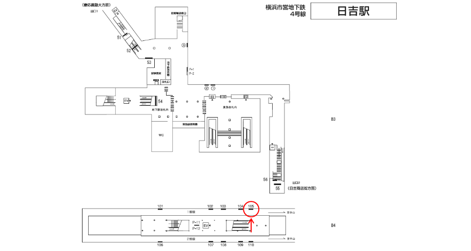 横浜市営地下鉄 日吉駅の線路前にある駅看板です。