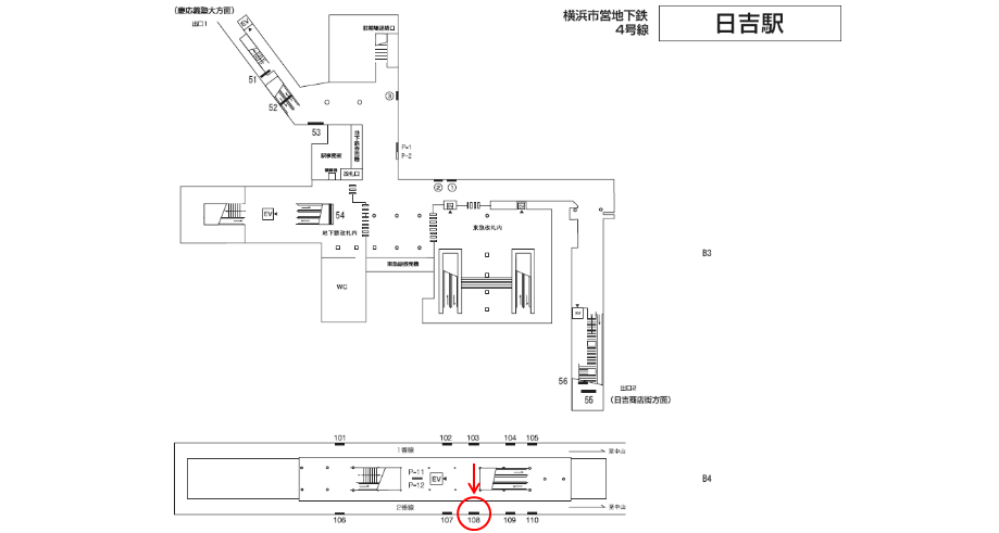 横浜市営地下鉄 日吉駅の線路前にある駅看板です。