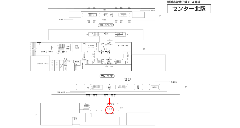 横浜市営地下鉄 センター北駅の駅構内にある駅看板です。