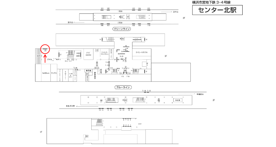 横浜市営地下鉄 センター北駅の駅構内にある駅看板です。
