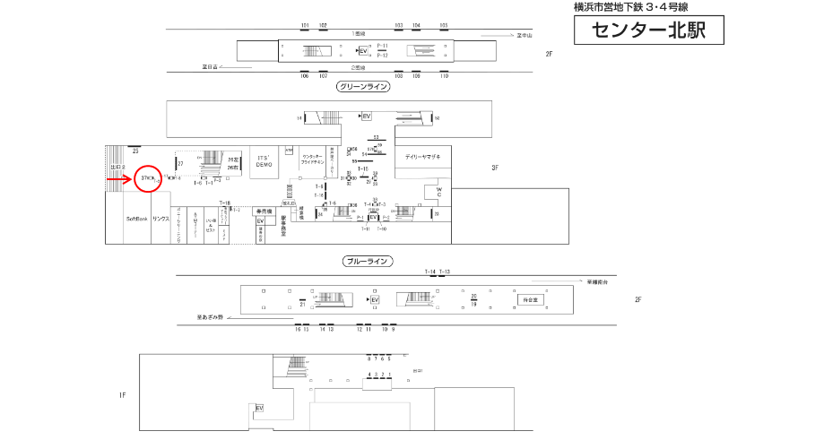 横浜市営地下鉄 センター北駅の駅構内にある駅看板です。