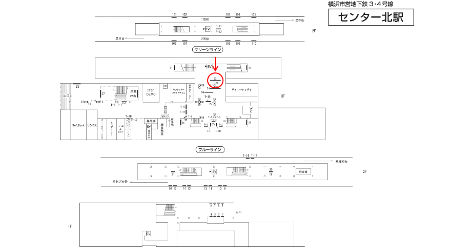 横浜市営地下鉄 センター北駅の駅構内にある駅看板です。