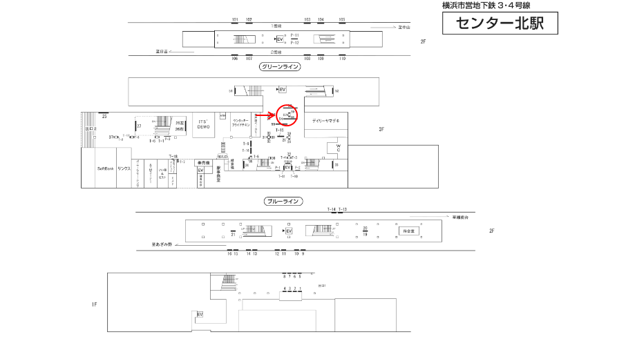 横浜市営地下鉄 センター北駅の駅構内にある駅看板です。