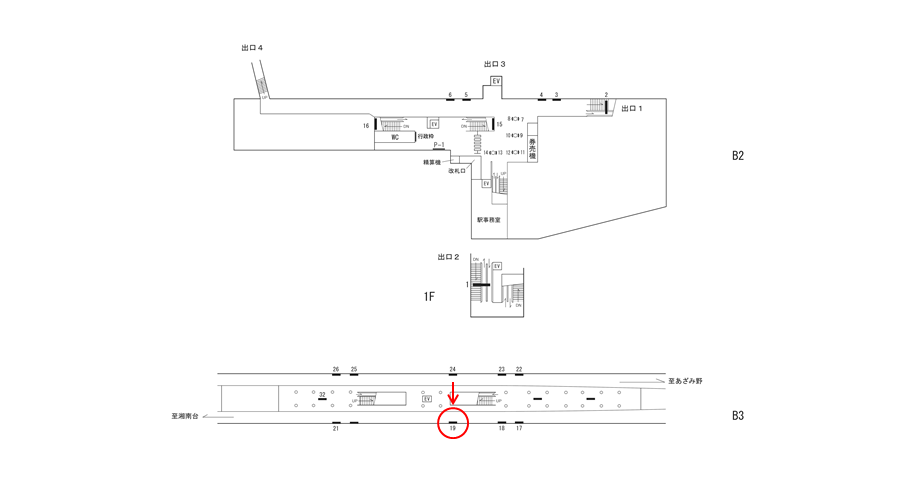 横浜市営地下鉄 中田駅の線路前にある駅看板です。