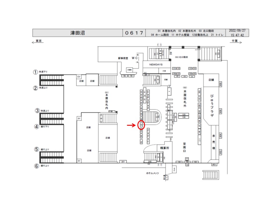 JR総武線津田沼駅の改札内に設置された看板(間接照明)です。ホームから改札へ向かう際に視認可能です。