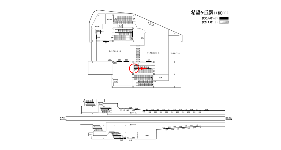○№314 改札内コンコース(階段・エスカレーター正面) |