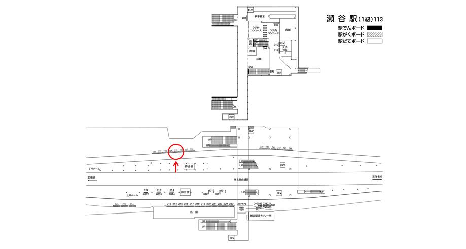 ○№302 改札内コンコース(階段正面/相鉄本線 大和・海老名方面ホーム) |
