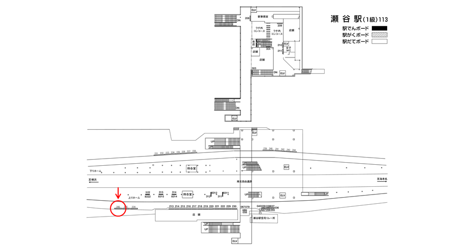 ○№302 改札内コンコース(階段正面/相鉄本線 大和・海老名方面ホーム) |