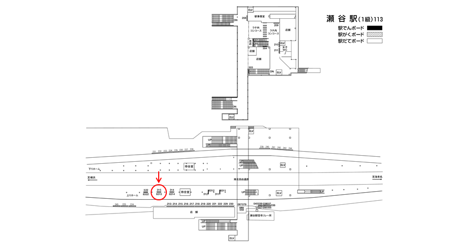 ○№302 改札内コンコース(階段正面/相鉄本線 大和・海老名方面ホーム) |