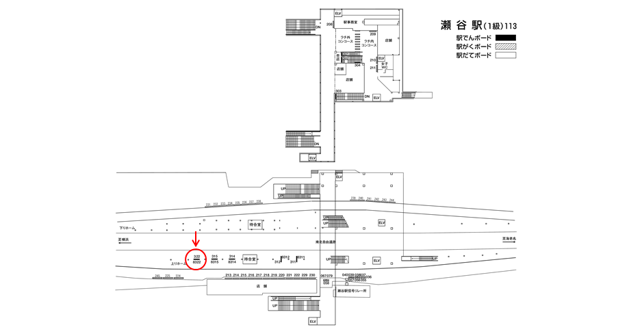 ○№302 改札内コンコース(階段正面/相鉄本線 大和・海老名方面ホーム) |