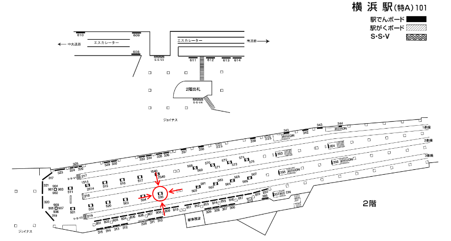 ○№2708 改札外通路(階段・エスカレーター正面/JR線・京急線・東急東横線・みなとみらい線・東口方面) |