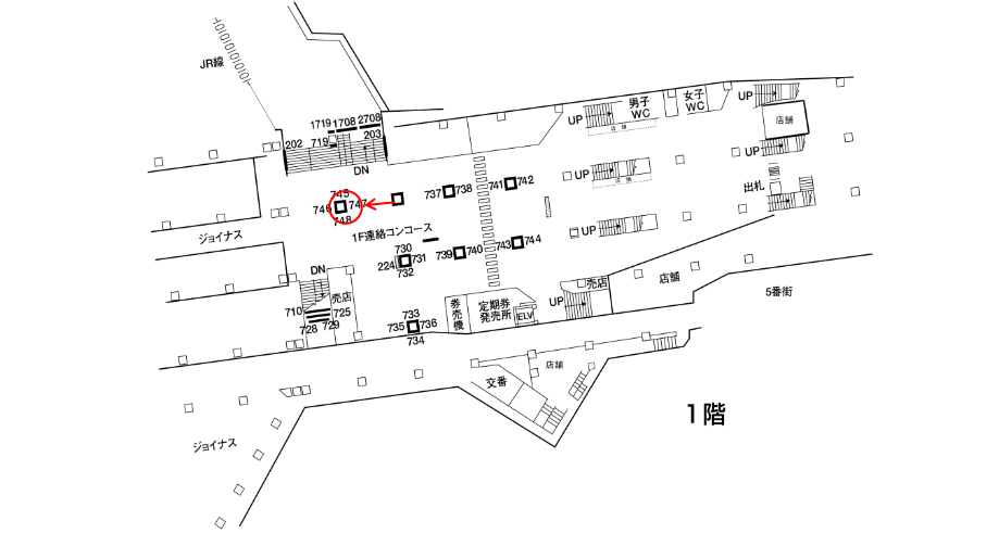 ○№1719 改札外通路(階段正面/JR線・京急線・東急東横線・みなとみらい線・東口方面) |