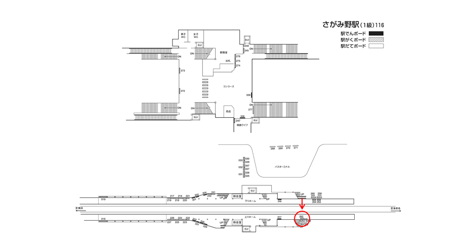 ホーム看板は電車を待っている駅利用者に見てもらえます。待ち時間を使った接触時間の長い広告です。接触時間を長く取れるホーム看板は広告の内容を理解してもらいやすいことから、企業広告やサービス・商品紹介の周知に利用されています。駅を毎日使う「さがみ野駅に生活基盤をもつ方」を対象とした広告にオススメです。