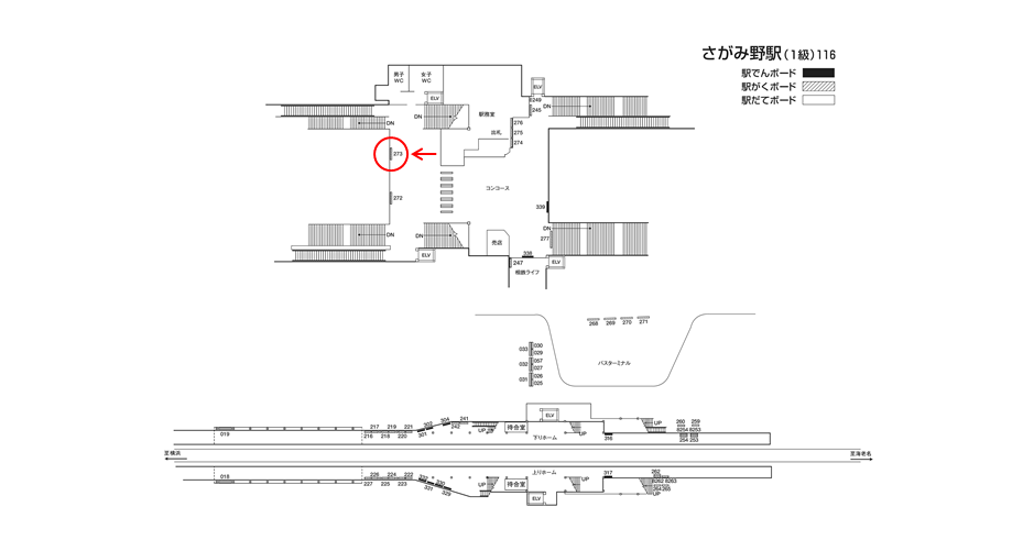 この駅看板は毎日駅を使う「さがみ野駅に生活基盤をもつ消費者」を対象とした広告にオススメです。