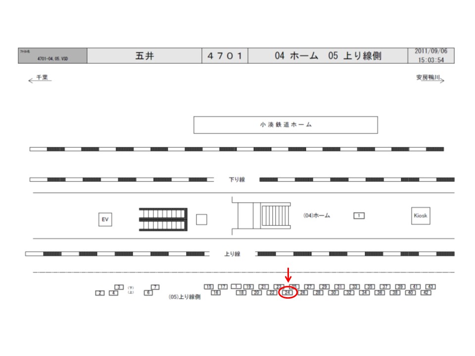 ○上り線側№23 上り線側(蘇我・千葉・横須賀線総武快速線【船橋・錦糸町・東京・品川・横浜・久里浜方面】・京葉線【千葉みなと・海浜幕張・南船橋・舞浜・新木場・東京方面】線路前 |
