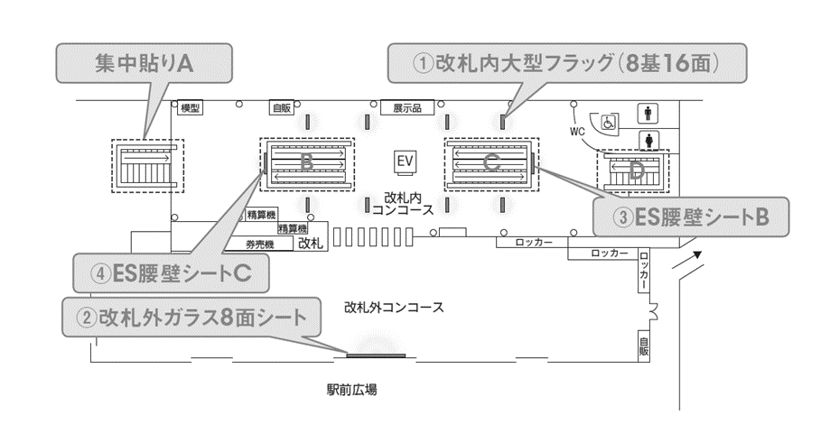 こちらの駅臨時広告は短期的に話題性の高い駅広告実施を検討中の方にお勧めいたします。
