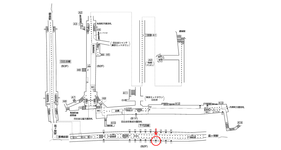 東京都千代田区に所在する東京メトロ 日比谷線・千代田線の停車駅。また、都営三田線、JR線(JR有楽町駅)にお乗り換えができます。