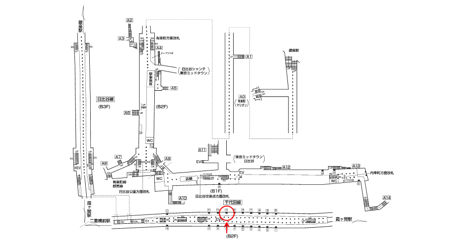 東京都千代田区に所在する東京メトロ 日比谷線・千代田線の停車駅。また、都営三田線、JR線(JR有楽町駅)にお乗り換えができます。