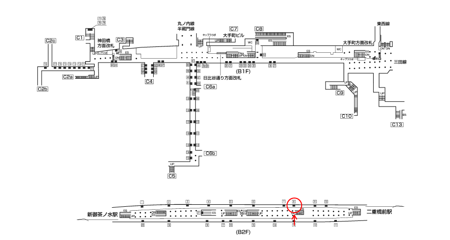 ○千代田線№38 改札外コンコース(神田橋方面改札/C3出口付近) |