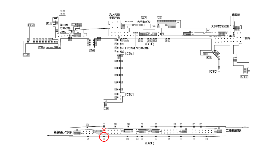 ○千代田線№38 改札外コンコース(神田橋方面改札/C3出口付近) |