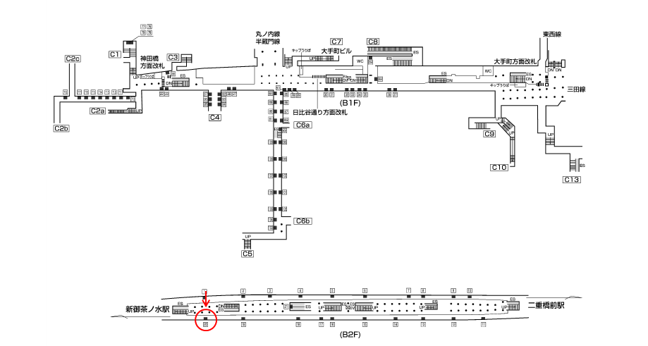 改札外コンコース(神田橋方面改札/C3出口付近)