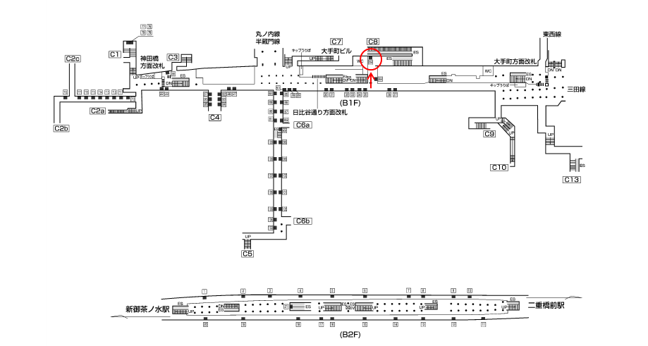 ○千代田線№38 改札外コンコース(神田橋方面改札/C3出口付近) |