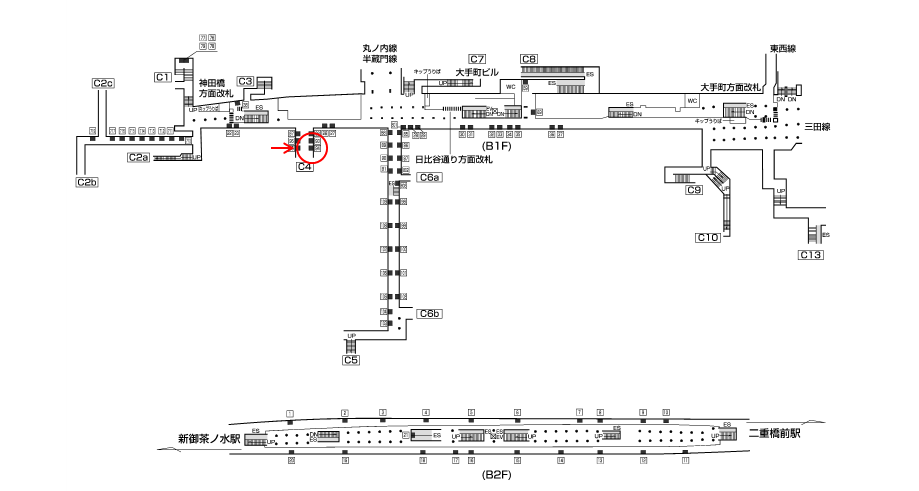○千代田線№38 改札外コンコース(神田橋方面改札/C3出口付近) |