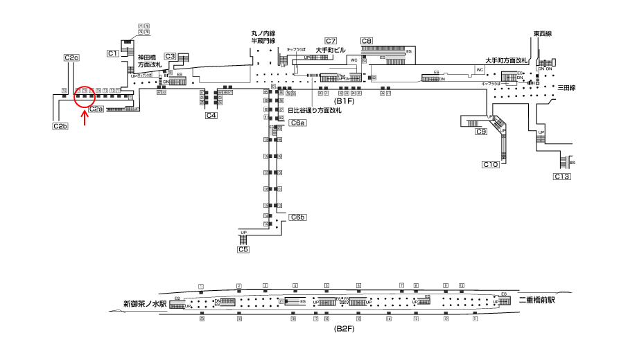 改札外コンコース(神田橋方面改札/C3出口付近)