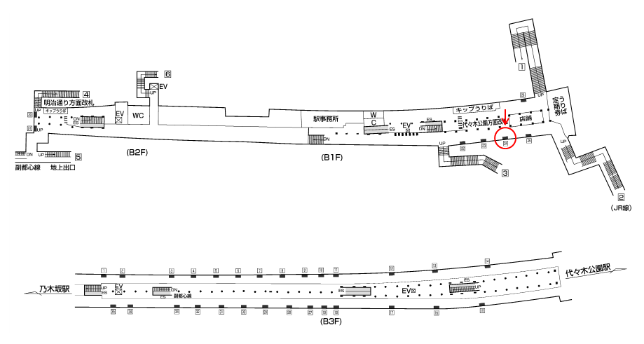 ○千代田線№23 改札外コンコース(代々木公園方面改札) |