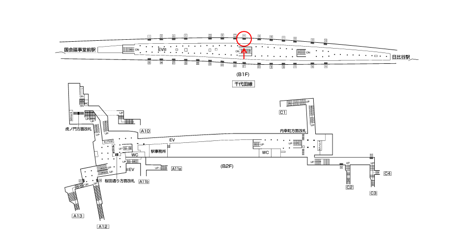 東京都千代田区に所在する東京メトロ 日比谷線・丸ノ内線・千代田線の停車駅。