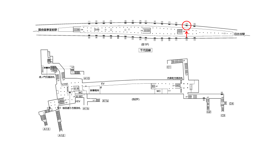 東京都千代田区に所在する東京メトロ 日比谷線・丸ノ内線・千代田線の停車駅。