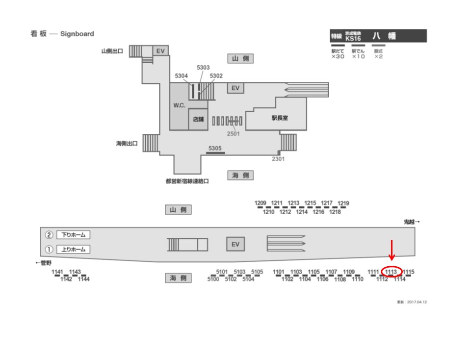 京成本線 八幡駅の上りホーム(京成高砂・青砥・上野方面)の線路前の看板です。ホームで電車を待つ際に見えます。