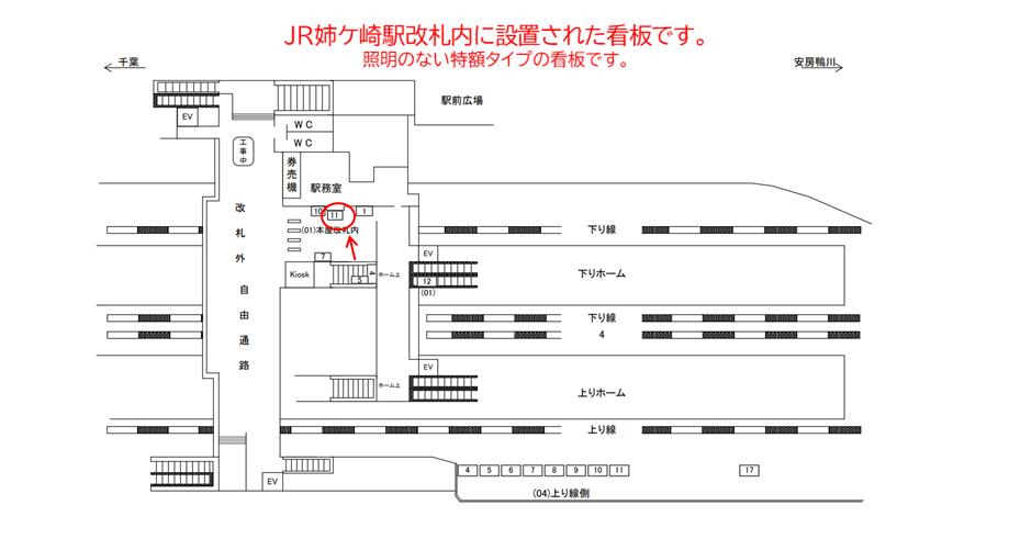 JR内房線 姉ケ崎駅の改札内の看板です。