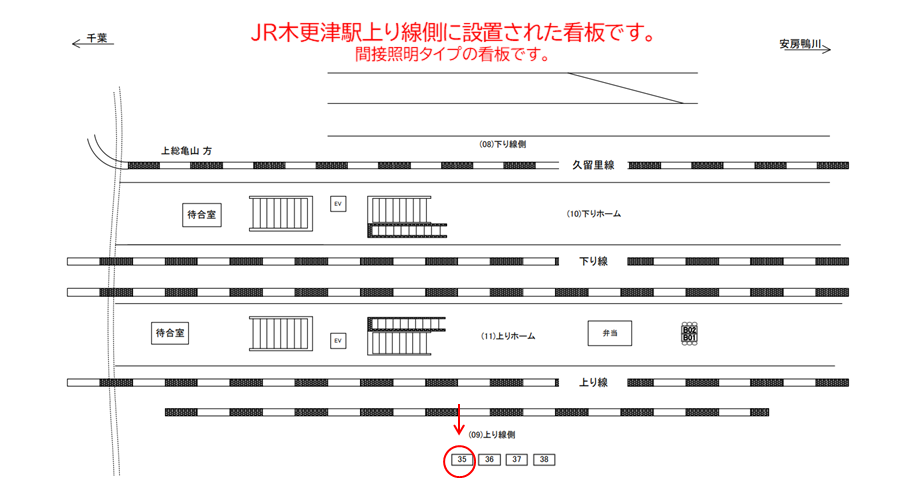 JR内房線 木更津駅の上り線の線路向こうに設置された看板です。