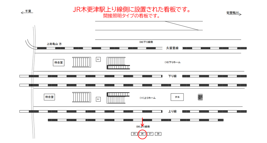 JR内房線 木更津駅の上り線の線路向こうに設置された看板です。