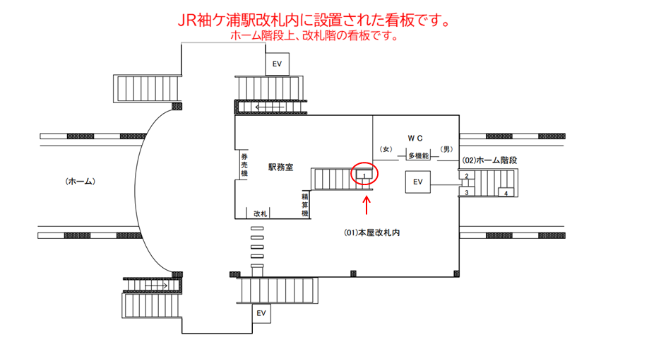 【駅看板・駅広告】JR 袖ケ浦駅 ホーム階段№1